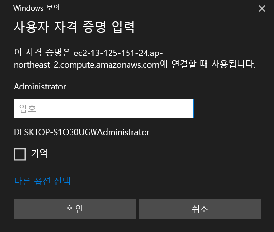 12. μ€ννλ €λ©΄ μνΈκ° νμνλ©°, RDP ν΄λΌμ΄μΈνΈμμ μνΈλ₯Ό κ°μ Έμ¬ μ μλ€.