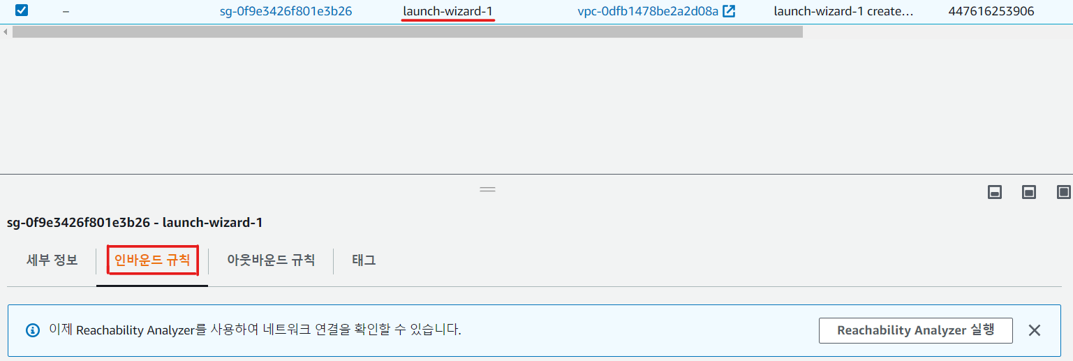 1. AWS ํํ์ด์ง, ๋ณด์๊ทธ๋ฃน์์ ์ธ๋ฐ์ด๋ ๊ท์น์ ์ถ๊ฐํด์ผํ๋ค.